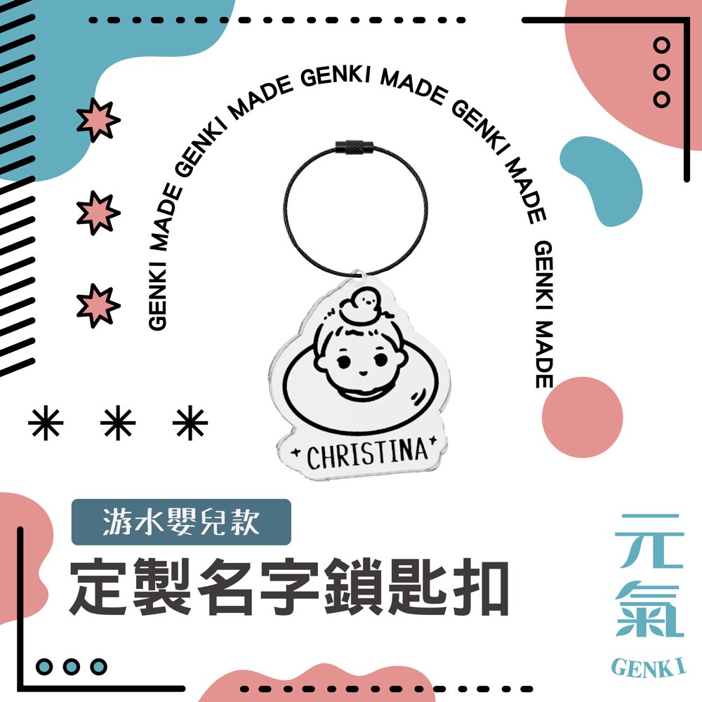 定製游水嬰兒名字鎖匙扣